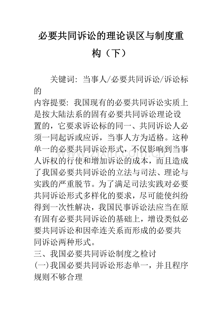 以上是我们有关增加我国必要共同诉讼制度的形态以适应处理新类型案件的需要的基本观点。当然,从达到诉讼经济和合理利用司法资源的目的。