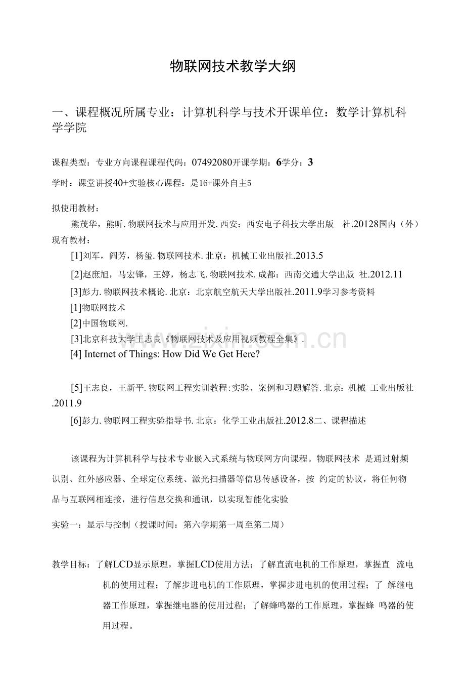 [6]彭力.物联网工程实验指导书.北京:化学工业出版社.2012.8二、课程描述