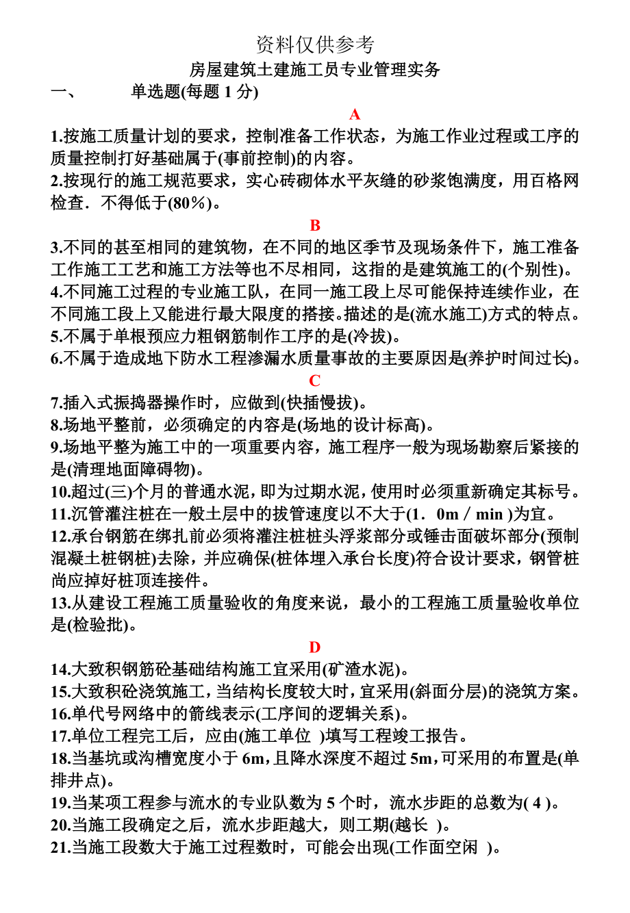 3.不同的甚至相同的建筑物,在不同的地区季节及现场条件下,施工准备工作施工工艺和施工方法等也不尽相同,这指的是建筑施工的(个别性)。