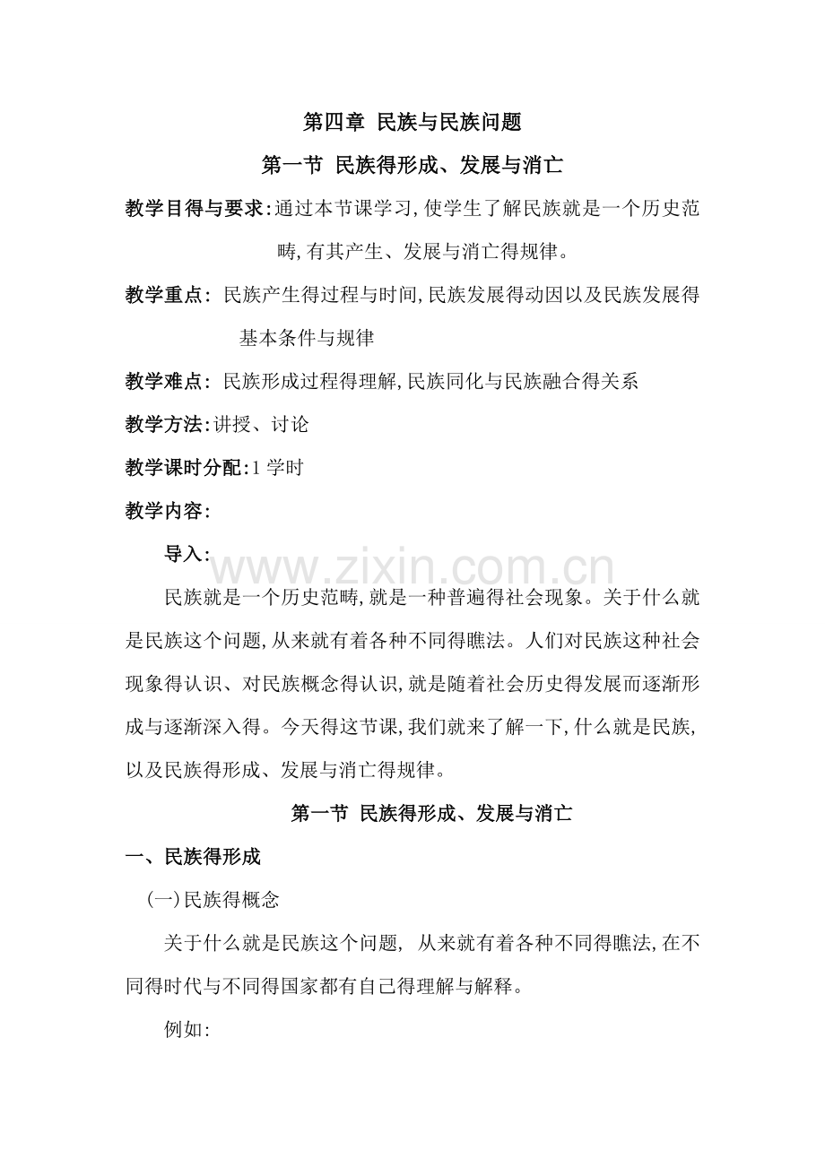 教学目得与要求:通过本节课学习,使学生了解民族就是一个历史范畴,有其产生、发展与消亡得规律。