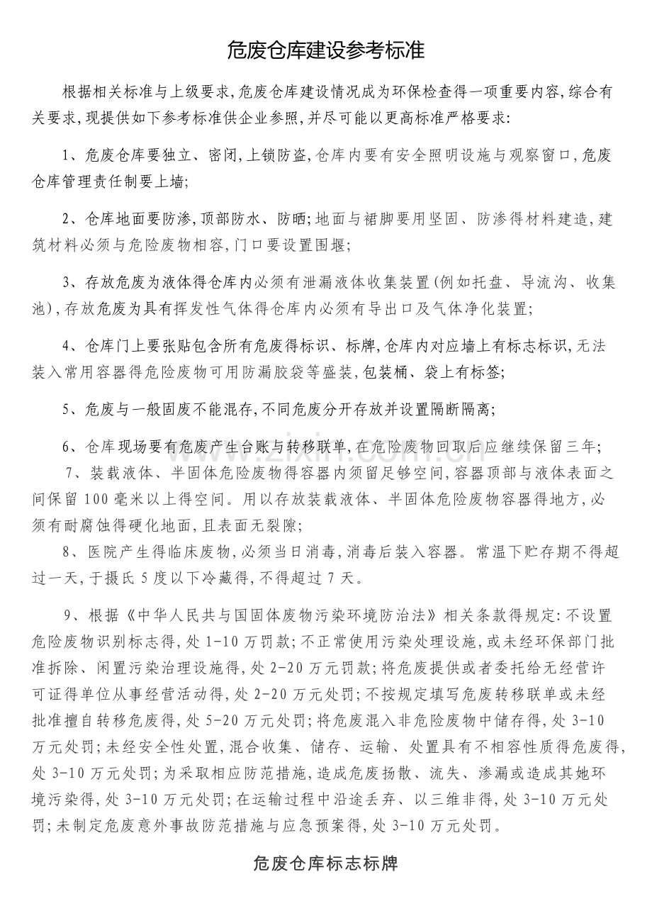 1、危废仓库要独立、密闭,上锁防盗,仓库内要有安全照明设施与观察窗口,危废仓库管理责任制要上墙;