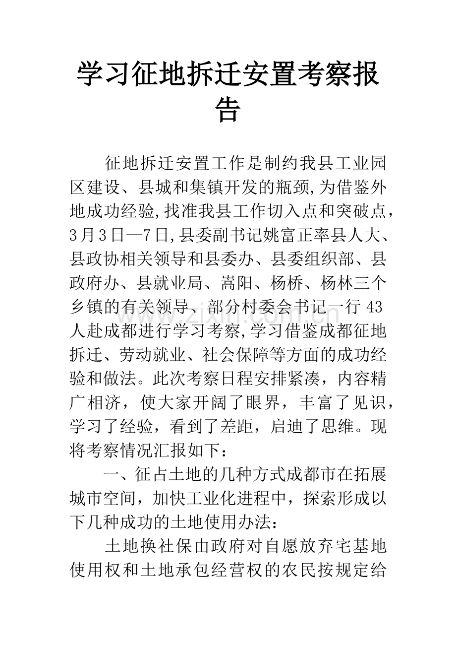 学习征地拆迁安置考察报告