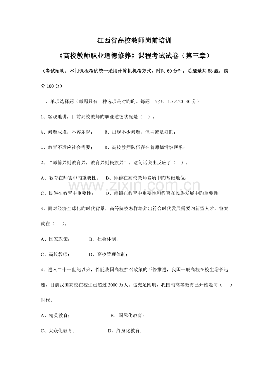 《高校教师职业道德修养》课程考试试卷(第三章)