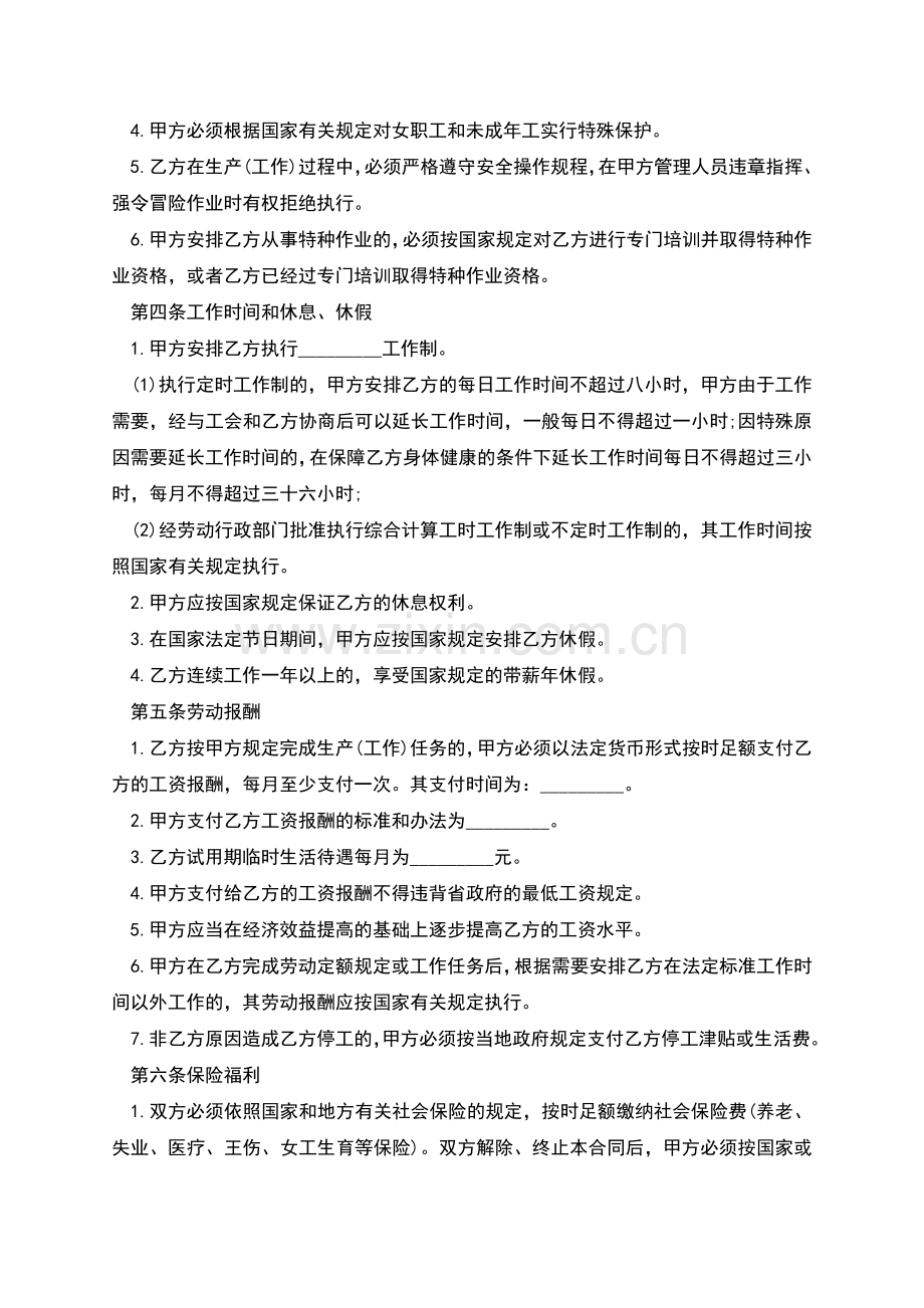 4.甲方必须根据国家有关规定对女职工和未成年工实行特殊保护。