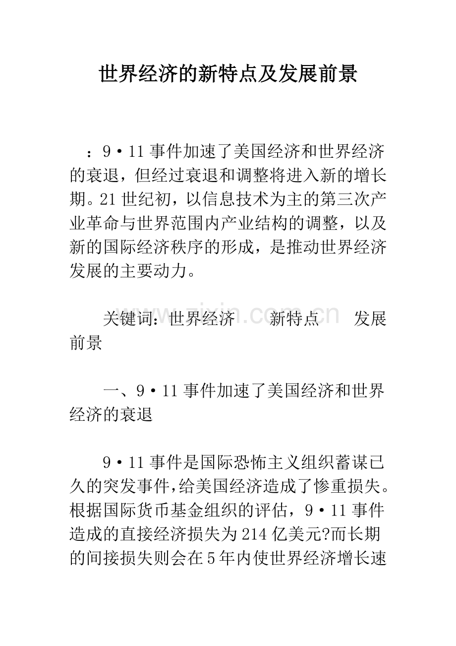 关键词:世界经济 新特点 发展前景