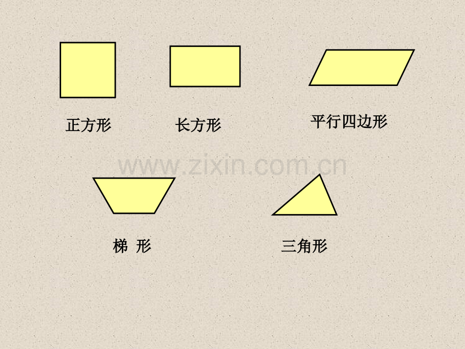 正方形正方形梯梯 形形三角形三角形长方形长方形平行四边形平行四边形你还记得吗?你还记得吗?长长 方方 形形 的的 面面 积积=正正 方方 形形 的的 面面 积积=平行四边形的面积平行四边形的面积=三三 角角 形形 的的 面面 积积=梯梯 形形 的的 面面 积积=长长 宽宽 S=ab边长边长边长边长 S=aa底底高高 S=ah底底高高2 S=ah2(上底上底+下底)下底)高高2 S=(a+b)h2下面这些物品里有哪些图形?下面这些物品里有哪些图形?由两个完全一样的梯形组合成的由一个长方形和两个完全一样的三角形组合成的 由几个简单的图由几个简单的图形拼出来的图形,我形拼出来的图形,我们把它们叫做们把它们叫做组合图组合图形形。生活中有哪些地方有组合图形?生活中有哪些地方有组合图形?例例2 2、右图表、右图表示的是一间房示的是一间房子侧面墙的形子侧面墙的形状。它的面积状。它的面积是多少平方米是多少平方米?你能想出几种方法?你能想出几种方法?可以把它看成一个正方可以把它看成一个正方形和一个三角形的组合。形和一个三角形的组合。方法一:方法一:5米5米2米5米2米5米5米52255 =5+25 =30(平方米)答:它的面积是30平方米。我把它分成两个完我把它分成两个完全一样的梯形。全一样的梯形。(552)(52)22 122.522 30(平方米)(平方米)答:它的面积是答:它的面积是30平方米。平方米。5米5米2米+2米 5米(52)米2米 5米(52)米5米5米2米方法二:方法二:你是怎样想的?你是怎样想的?5米5米2米5米5米2米=-(5+2)5(5 2)222=35-5=30(平方米)平方米)方法二:方法二:想:这块菜地的面积想:这块菜地的面积 =平行四边形面积平行四边形面积 三角形面积三角形面积5033503335122351221650165021021018601860(平方米)(平方米)60cm30cm45cm=1800225=1575(cm2)603030(6045)2学校开运动会要制作一些锦旗,式样如图所示。学校开运动会要制作一些锦旗,式样如图所示。一面锦旗需要多少平方厘米的布料?一面锦旗需要多少平方厘米的布料?中队旗面积中队旗面积=梯形面积梯形面积+梯形面积梯形面积中队旗面积中队旗面积=长方形面积长方形面积+三角形面积三角形面积 2中队旗面积中队旗面积=梯形面积梯形面积+三角形面积三角形面积中队旗面积中队旗面积=长方形面积长方形面积 三角形面积三角形面积81225你敢接受挑战吗?你敢接受挑战吗?求下列图形的面积。求下列图形的面积。(单位:单位:cm)(2582)(2512)+=100+300=400(cm2)201016你敢接受挑战吗?你敢接受挑战吗?求下列图形的面积。求下列图形的面积。(单位:单位:cm)12(10+16)12220(1610)2+=156+60=216(cm2)小小 结结方法:方法:一分图形一分图形 二找条件二找条件 三算面积三算面积关键:关键:学会运用学会运用“分割分割”与与“添补添补”的方的方 法计算组合图形面积法计算组合图形面积