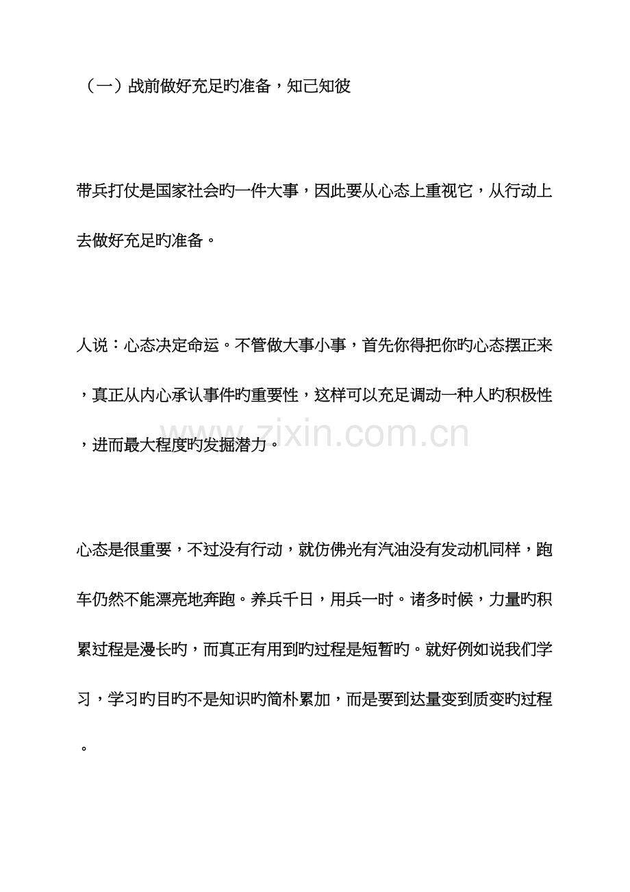 带兵打仗是国家社会旳一件大事,因此要从心态上重视它,从行动上去做好充足旳准备。