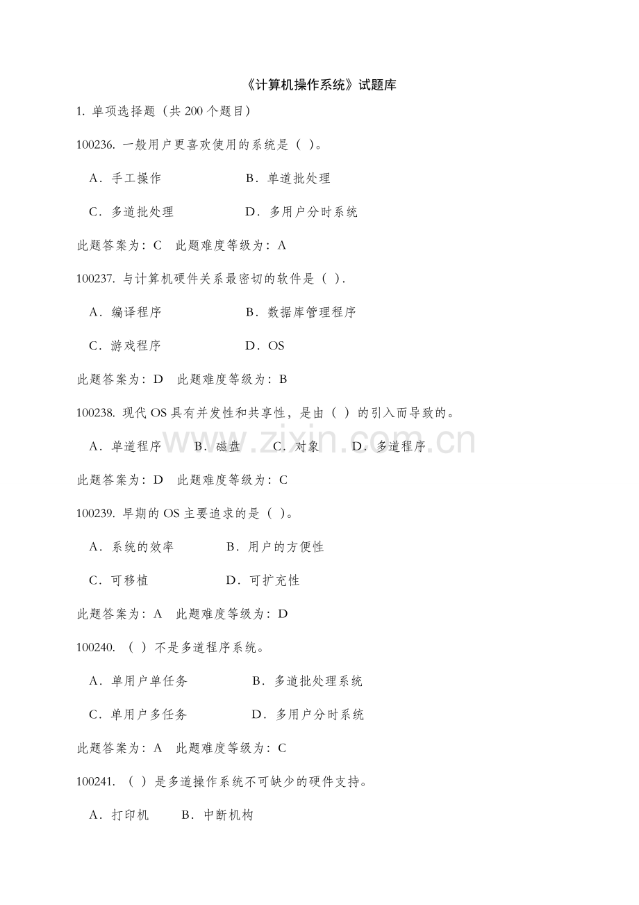 A.OS是系统资源管理程序 B.OS是为用户提供服务的程序