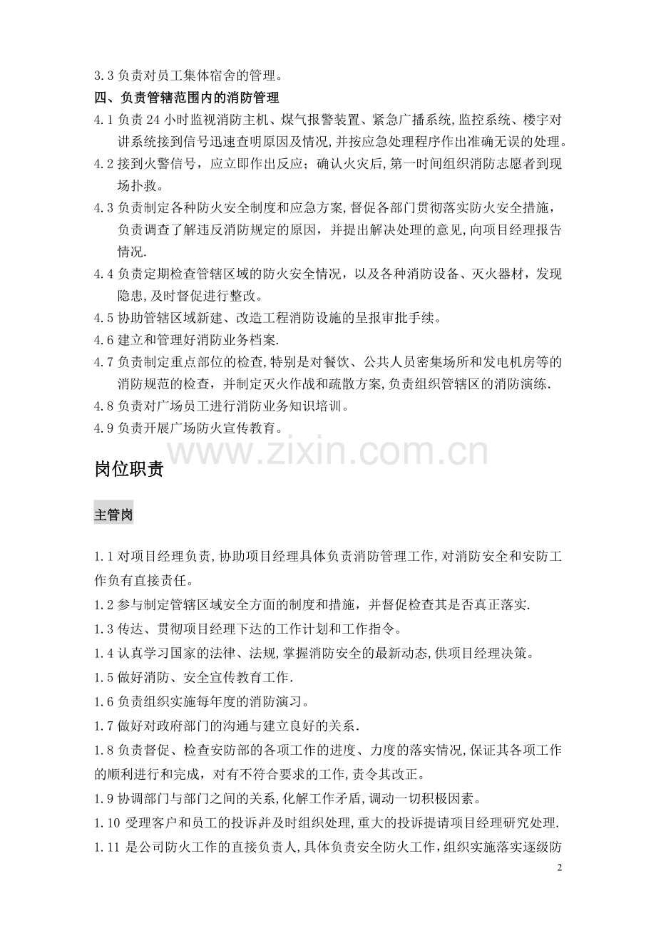 2.6负责处理各岗位发生的投诉、纠纷,化解矛盾,控制事态发展,协助各岗位处理治安事件.