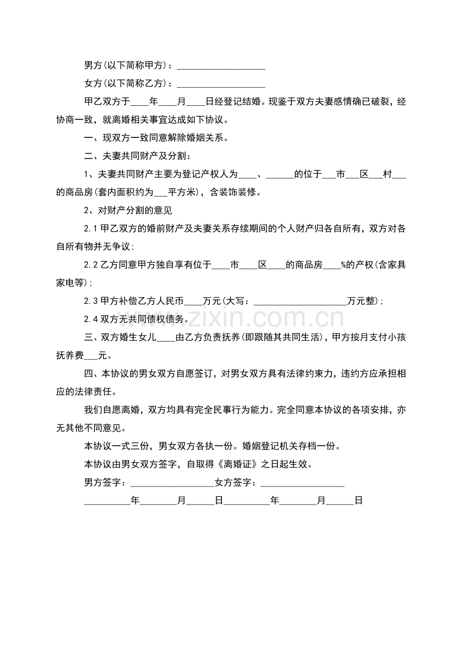 本协议由男女双方签字,自取得《离婚证》之日起生效。