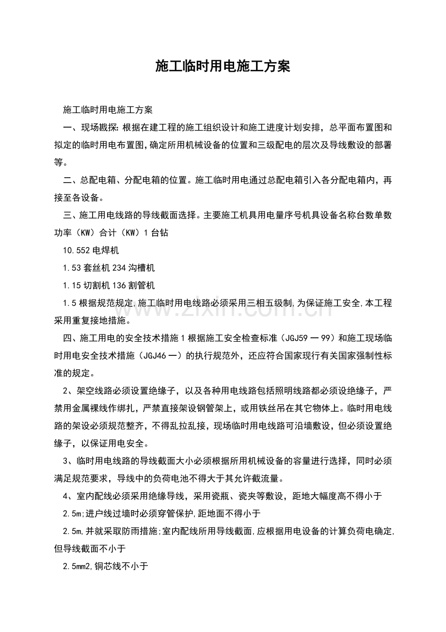 1.5根据规范规定,施工临时用电线路必须采用三相五级制,为保证施工安全,本工程采用重复接地措施。
