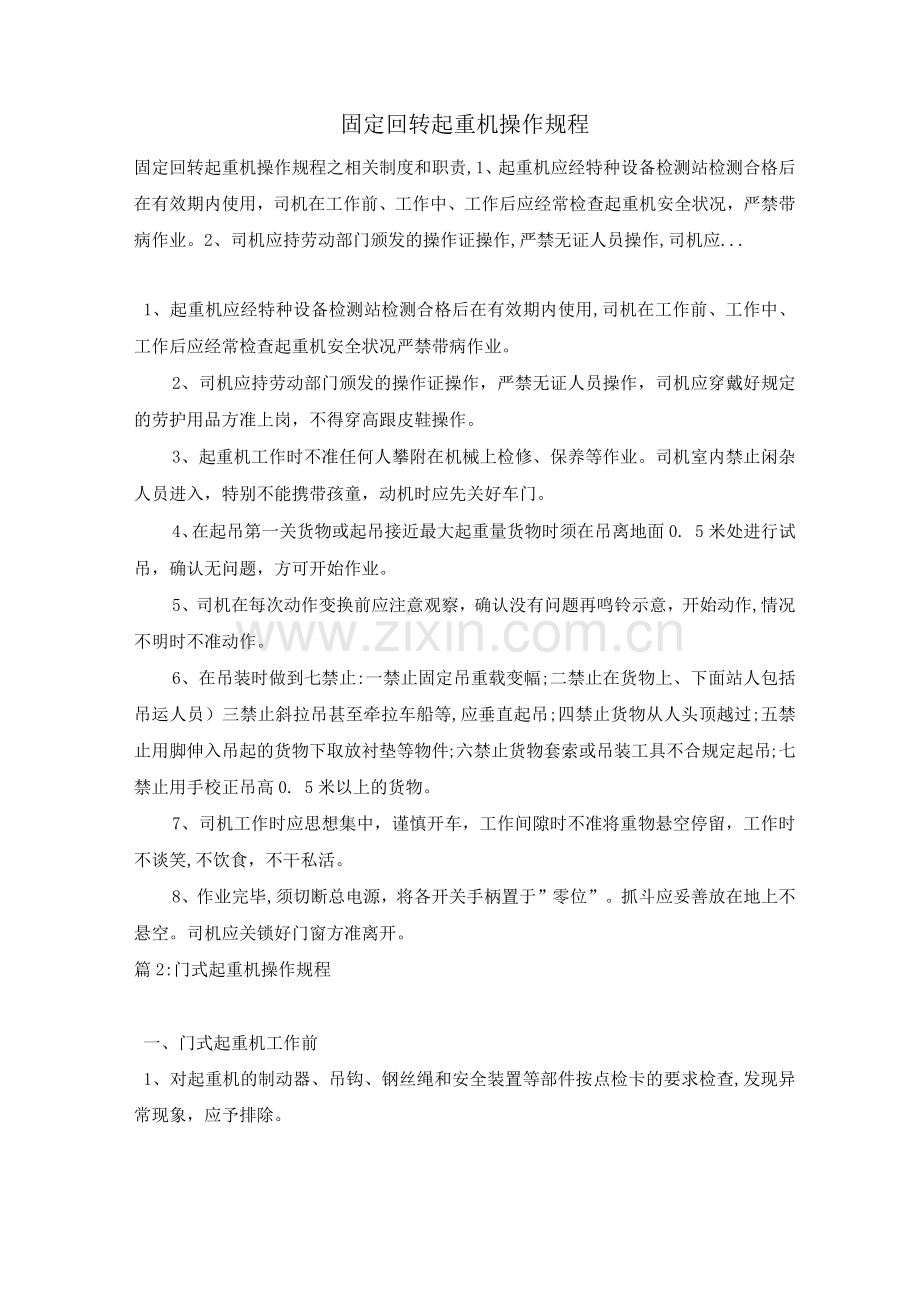固定回转起重机操作规程