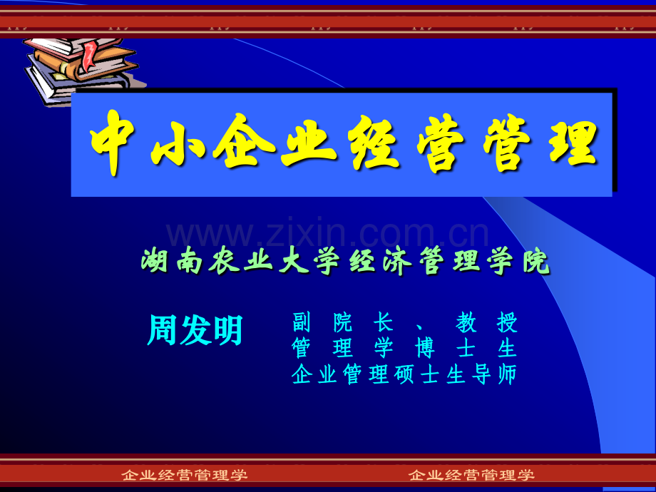 1中小企业经营管理中小企业经营管理企业经营管理学 企业经营管理学湖湖南南农农业业大大学学经经济济管管理理学学院院副副院院长长、教教授授管管理理学学博博士士生生企企业业管管理理硕硕士士生生导导师师 周发明周发明 中小企业经营管理中小企业经营管理3q引言:中国企业成长的困惑引言:中国企业成长的困惑q战略背景:挑战与机遇并存战略背景:挑战与机遇并存q应对方略:企业的战略选择应对方略:企业的战略选择4中国企业:各领风骚三五年中国企业:各领风骚三五年中国名牌:存在一种中国名牌:存在一种“流星流星”现象现象“标王标王”纷纷倒下,旭日没有升到正午便纷纷倒下,旭日没有升到正午便落山了落山了“健力宝健力宝”扛不住中国民族工业的大旗,扛不住中国民族工业的大旗,而而“洋水洋水”Coca-colaCoca-cola却洒遍了中国的红土却洒遍了中国的红土地地“洋快餐洋快餐”在有着悠久饮食文化的中国长在有着悠久饮食文化的中国长驱驱 直入直入中国洗发水市场是谁的天下中国洗发水市场是谁的天下q中国企业成长的困惑5v中小企业:难以长大寿命不长6q一、中小企业及其创办一、中小企业及其创办v何为中小企业v中小企业的创办7何为企业何为企业企业定义:企业是一个营利性的独立的社会技企业定义:企业是一个营利性的独立的社会技术经济开放系统。术经济开放系统。企业三性:企业三性:经济性:从事生产、流通等经济活动 营利性:以盈利为目的(for-profit organization)独立性:“四自”自主经营,自负盈亏,自我发展,自我约束的独立企业法人。8什么是中小企业v界定企业规模的方法客观性标准:销售收入、生产能力、从业人客观性标准:销售收入、生产能力、从业人数数相对性标准:以行业中相对份额指标为标准。相对性标准:以行业中相对份额指标为标准。如,事先规定根据排序前如,事先规定根据排序前10%为大型企业,为大型企业,其余为中小企业。其余为中小企业。9各国制造业中小企业划分标准国家美国加拿大法国英国德国日本韩国从业人数500 300 500 100 300 300 30010v我国政府关于企业规模的界定第一次:第一次:20世纪世纪50年代,以企业职工人数为年代,以企业职工人数为标准标准第二次:第二次:1962年,按固定资产额划分;年,按固定资产额划分;第三次:第三次:1978年,以综合生产能力为标准;年,以综合生产能力为标准;第四次:第四次:1988年,三大参照系:生产能力或年,三大参照系:生产能力或产品数量、生产设备功能或数量、固定资产产品数量、生产设备功能或数量、固定资产原值;原值;第五次:第五次:2003年,职工人数、销售额、资产年,职工人数、销售额、资产总额。总额。11v中小企业划分标准(2003)工业工业职工人数2000人以下,或销售额3亿元以下,或资产总额4亿元以下。其中,中型企业须同时满足职工人数300人及以上,销售额3000万元以上,资产总额4000万元以上;其余为小型企业。建筑业建筑业职工人数3000人以下,或销售额3亿元以下,或资产总额4亿元以下。其中,中型企业须同时满足职工人数600人及以上,销售额3000万元以上,资产总额4000万元以上;其余为小型企业。12批发业批发业职工人数200人以下,或销售额3亿元以下。其中,中型企业须同时满足职工人数100人及以上,销售额3000万元以上;其余为小型企业。零售业零售业职工人数500人以下,或销售额1.5亿元以下。其中,中型企业须同时满足职工人数100人及以上,销售额1000万元以上;其余为小型企业。13交通运输业交通运输业职工人数3000人以下,或销售额3亿元以下。其中,中型企业须同时满足职工人数500人及以上,销售额3000万元以上,资产总额4000万元以上。其余为小型企业。住宿餐饮业住宿餐饮业职工人数800人以下,或销售额1.5亿元以下。其中,中型企业须同时满足职工人数400人及以上,销售额3000万元以上;其余为小型企业。14中小企业的创办v(一)企业创办者应具备的条件如果你想创办企业,请回答以下问题:如果你想创办企业,请回答以下问题:你是否具备在一个小团体里扮演一个重要角你是否具备在一个小团体里扮演一个重要角色的技能和耐心?色的技能和耐心?你敢于冒险或承担风险吗?你敢于冒险或承担风险吗?为了企业,你是否可以紧衣缩食、降低生活为了企业,你是否可以紧衣缩食、降低生活水平?水平?由于某种变故,你的合作伙伴或合伙人离你由于某种变故,你的合作伙伴或合伙人离你而去,你是否能承受这种情感压力孤军奋战,而去,你是否能承受这种情感压力孤军奋战,矢志不渝?矢志不渝?15你是否能够虚心接受他人的批评,正视自己你是否能够虚心接受他人的批评,正视自己的缺点和错误,并迅速加以改正?的缺点和错误,并迅速加以改正?你是否具有与不相识的人进行沟通的能力?你是否具有与不相识的人进行沟通的能力?你是否具有为了一个目标,不达目的誓不罢你是否具有为了一个目标,不达目的誓不罢休的决心和勇气?休的决心和勇气?你是否具有工作责任心和对新事物的求知欲你是否具有工作责任心和对新事物的求知欲?以上八个方面分别从心理素质、个人能力、团队精神、性格特征对企业经营者给出了衡量标准。16v(二)行业的选择选择行业应考虑三个问题选择行业应考虑三个问题1、行业吸引力何在?、行业吸引力何在?市场潜力有多大?市场容量有多大?行业成熟程度?2、进入