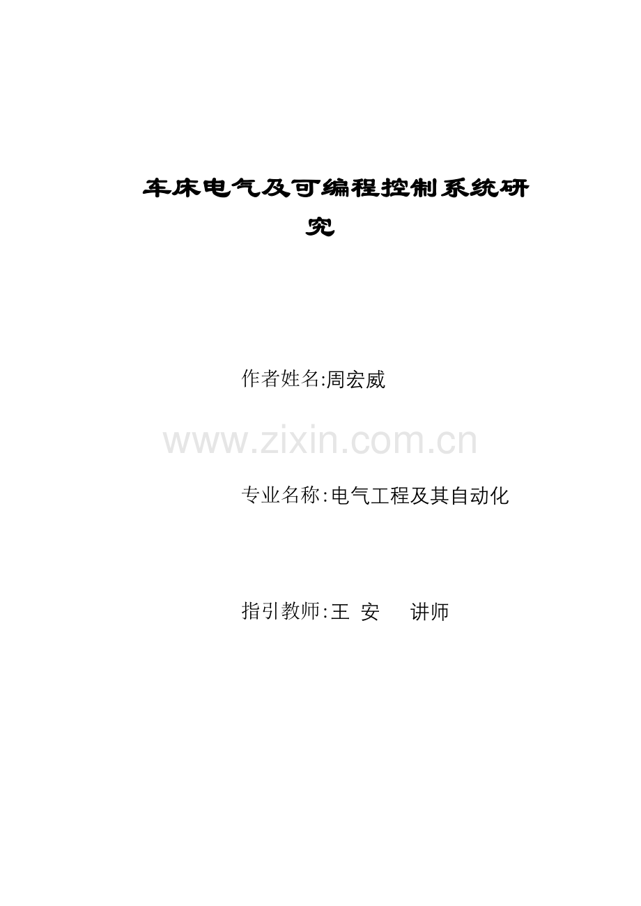 车床电气及可编程控制系统研究
