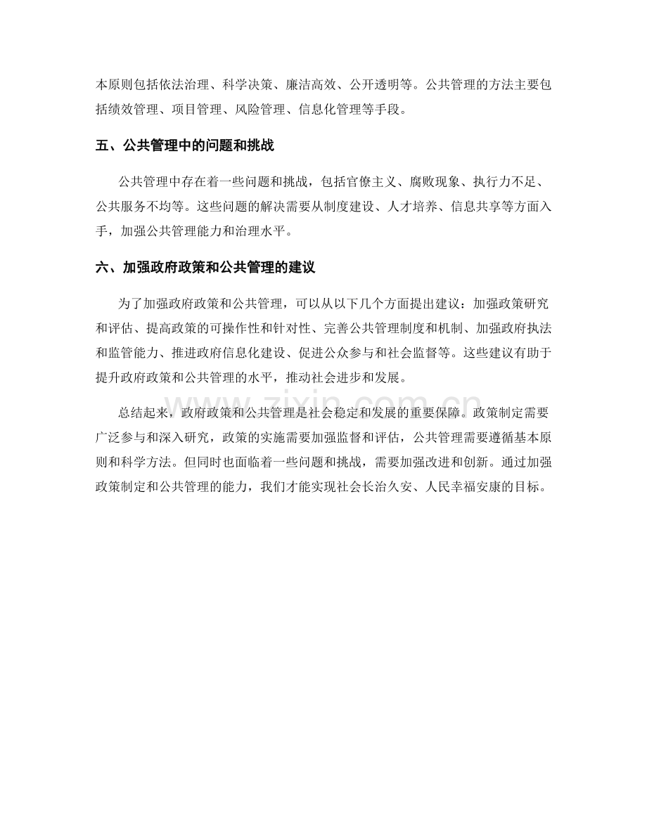 总结起来,政府政策和公共管理是社会稳定和发展的重要保障。政策制定需要广泛参与和深入研究,政策的实施需要加强监督和评估,公共管理需要遵循基本原则和科学方法。但同时也面临着一些问题和挑战,需要加强改进和创新。通过加强政策制定和公共管理的能力,我们才能实现社会长治久安、人民幸福安康的目标。