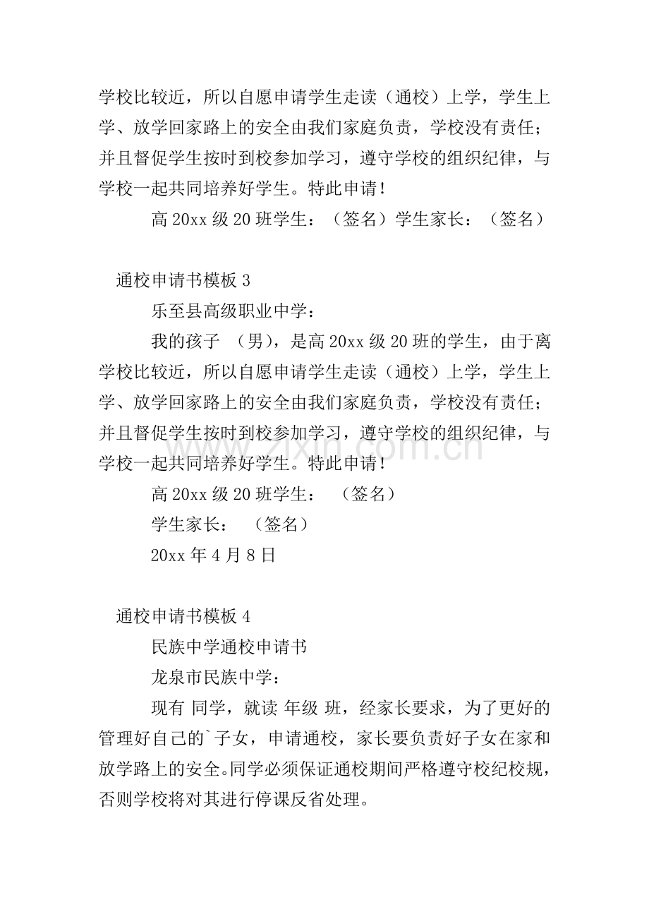 现有 同学,就读 年级 班,经家长要求,为了更好的管理好自己的`子女,申请通校,家长要负责好子女在家和放学路上的安全。 同学必须保证通校期间严格遵守校纪校规,否则学校将对其进行停课反省处理。