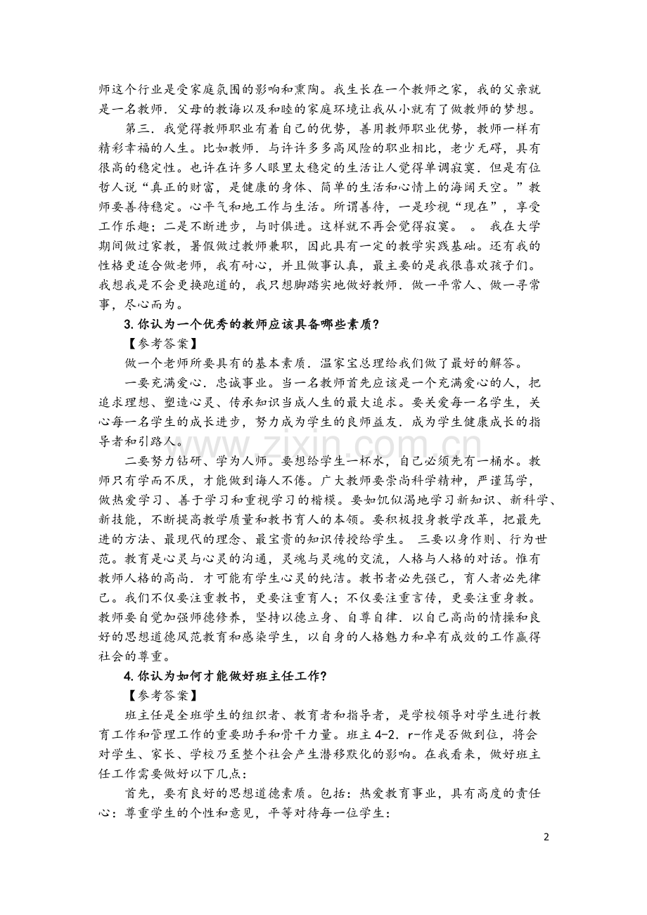 2.教师要耐得住寂寞、清贫。教师要守住这片净土。你为何会选择教师这个行业,必要时你会更换跑道吗?