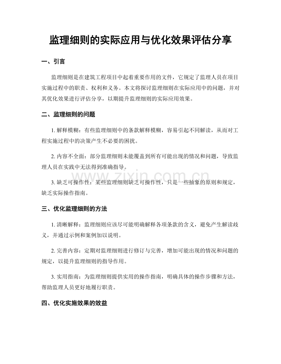 监理细则在建筑工程项目中起着重要的指导作用。通过对其实际应用的优化和效果评估,可以提升监理细则的实际应用效果,有效规范工程项目实施流程,提高管理水平和质量,降低成本风险。不断优化和改进监理细则,是项目顺利进行的重要保障。