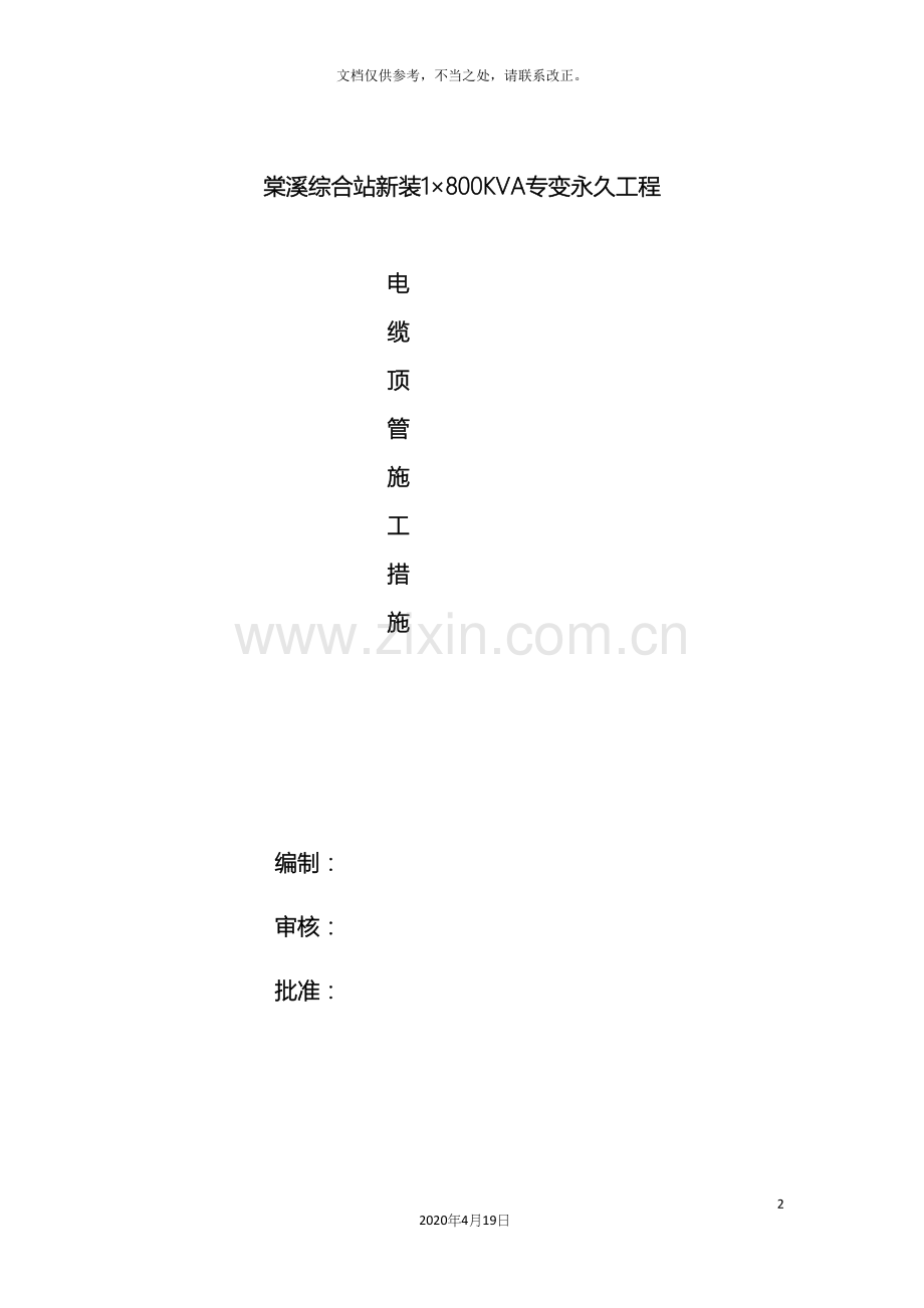 该方案仅用于棠溪综合站新装1×800KVA专变永久工程的低压电缆顶管施工工程。