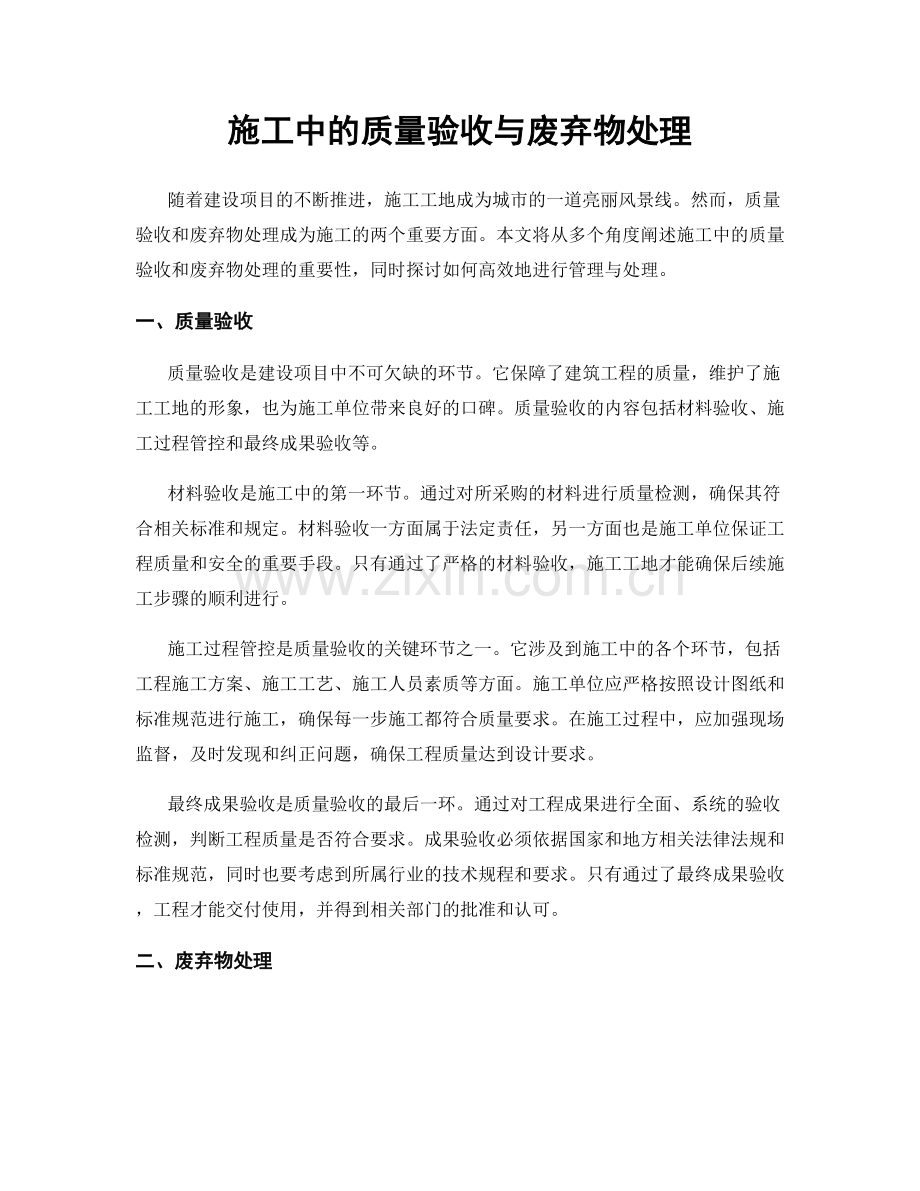 质量验收和废弃物处理是施工工地不可忽视的重要工作。本文从质量验收和废弃物处理的角度出发,探讨了其重要性和方法。希望通过本文的阐述,引起人们对施工中的质量验收和废弃物处理的重视,共同推动建设行业的健康发展。