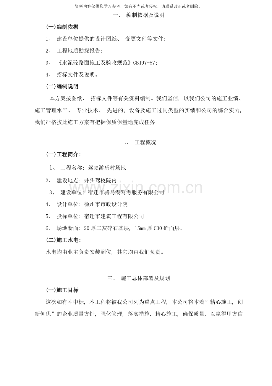 6、 场地断面: 20厚二灰碎石基层, 15mm厚C30砼面层。