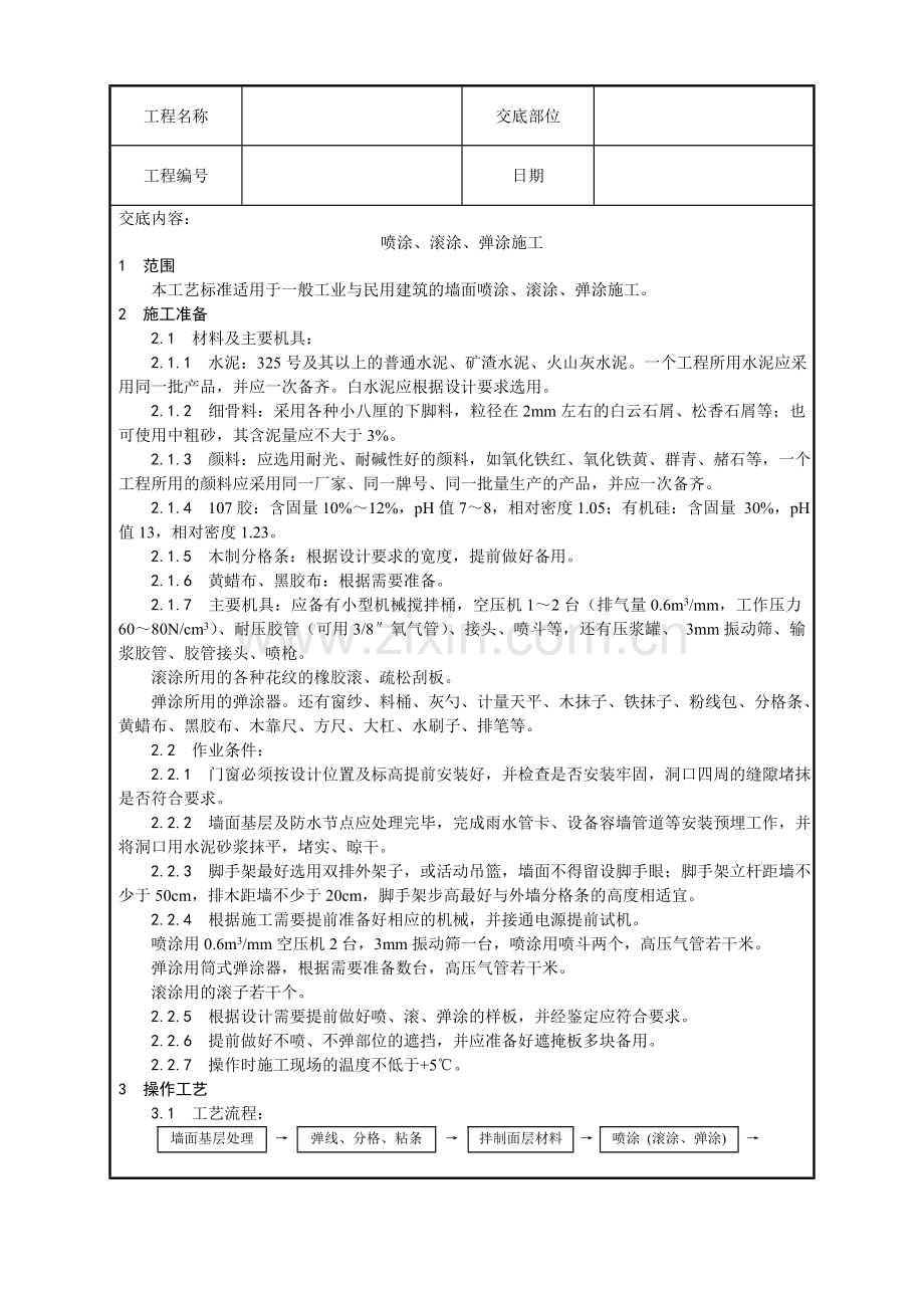 本工艺标准适用于一般工业与民用建筑的墙面喷涂、滚涂、弹涂施工。