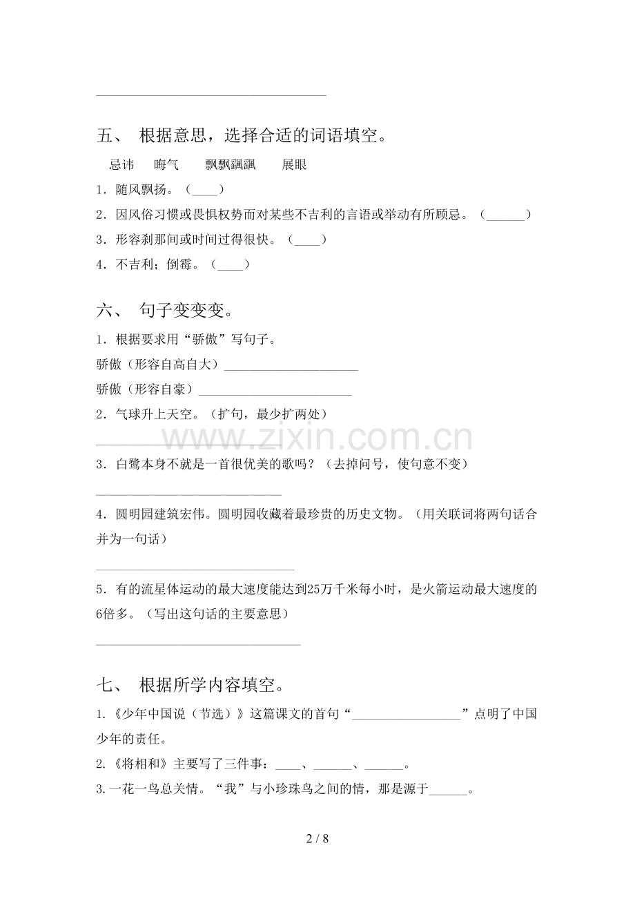 1.《少年中国说(节选)》这篇课文的首句“_________________”点明了中国少年的责任。