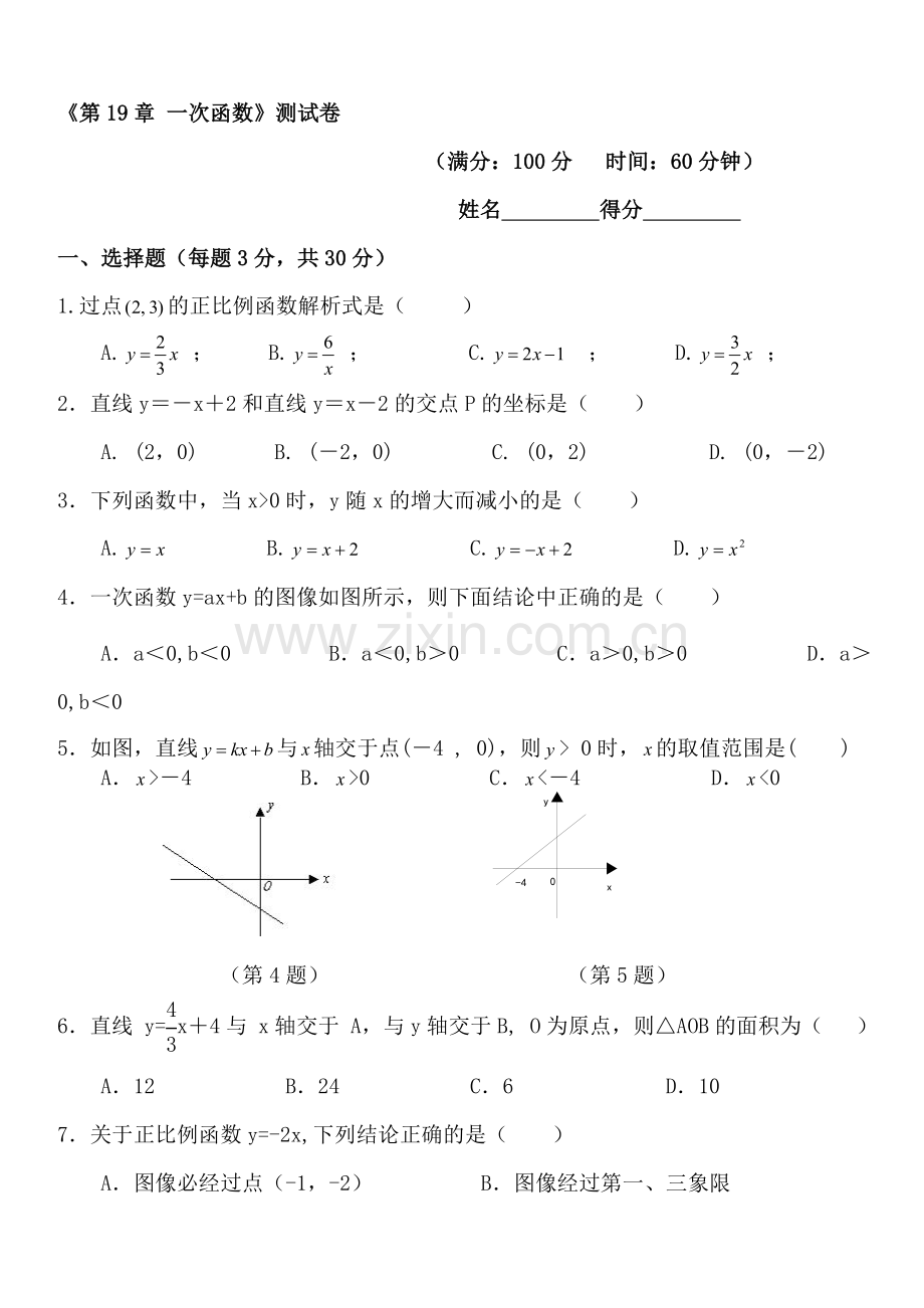 4.一次函数y=ax+b的图像如图所示,则下面结论中正确的是( )