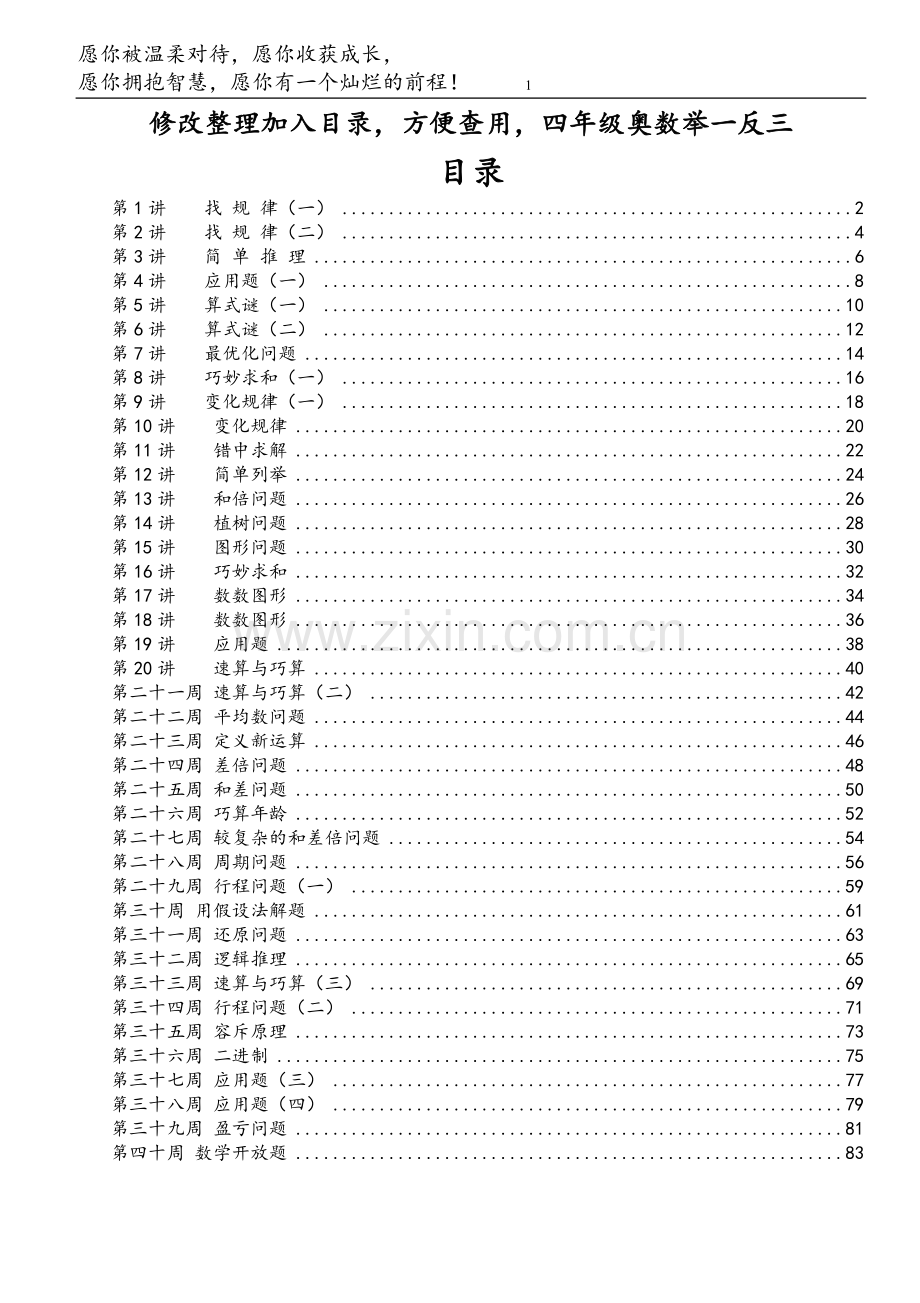 修改整理加入目录,方便查用,四年级奥数举一反三