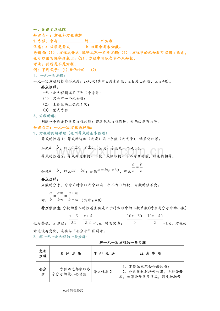 易错点:(1).方程式等式,但等式不一定是方程;(2).方程中的未知数可以用x表示,也可以用其他字母表示;(3).方程中可以含多个未知数。