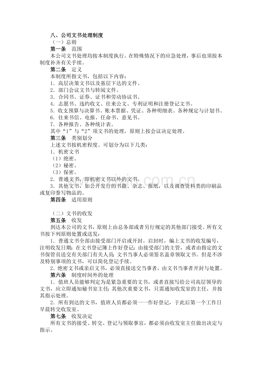 本公司文书处理均按本制度执行。在特殊情况下的应急处理,事后也须按本制度补齐有关手续。
