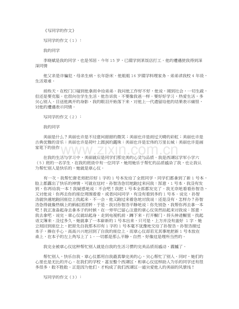 在我的生活与学习中,美丽就应是同学们那完美的心灵与品质。我是西湖区学军小学六(5)班的一名学生,在我的班级中有一位同学,她用她乐于帮忙的品质感染了我,也让我认为帮忙别人是快乐的,她就是章心仪。