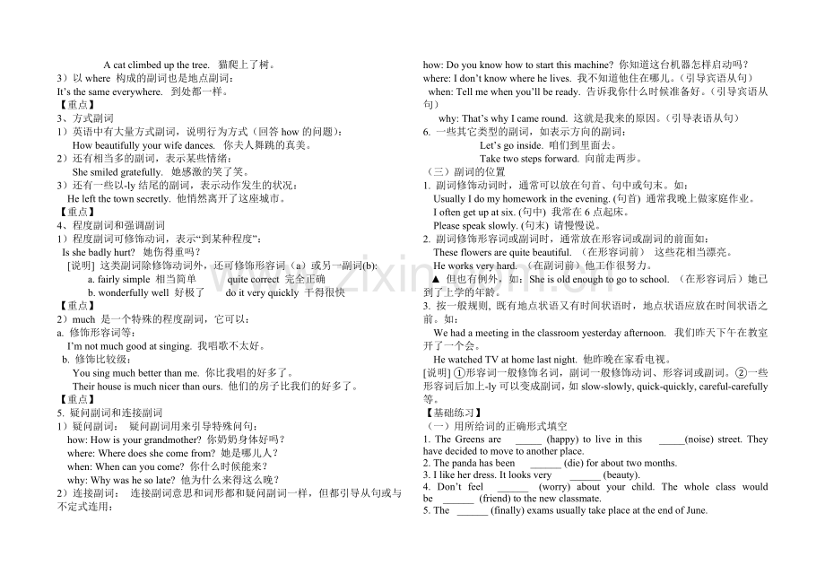 2. 副词修饰形容词或副词时,通常放在形容词或副词的前面如: