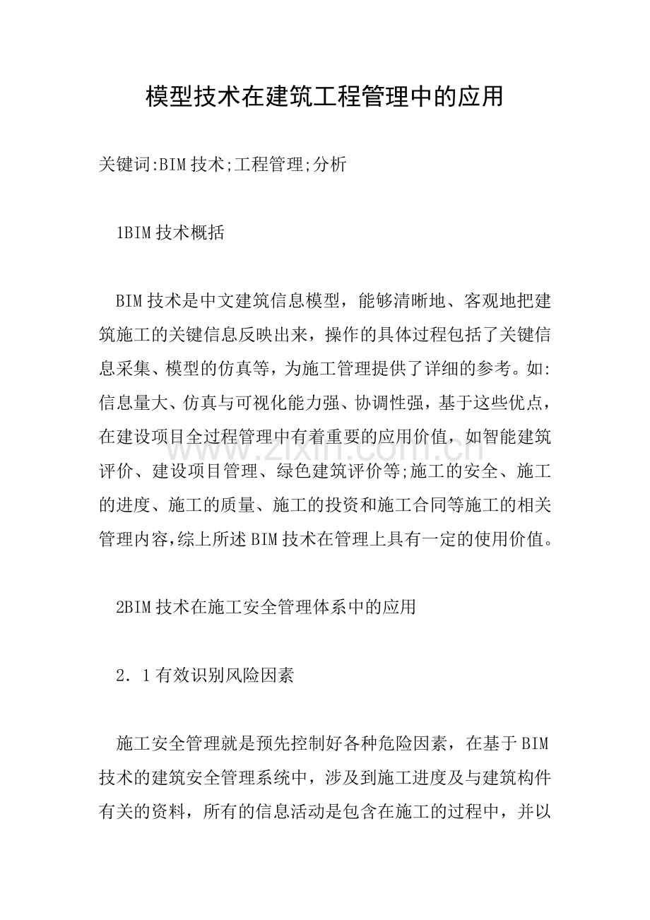 模型技术在建筑工程管理中的应用