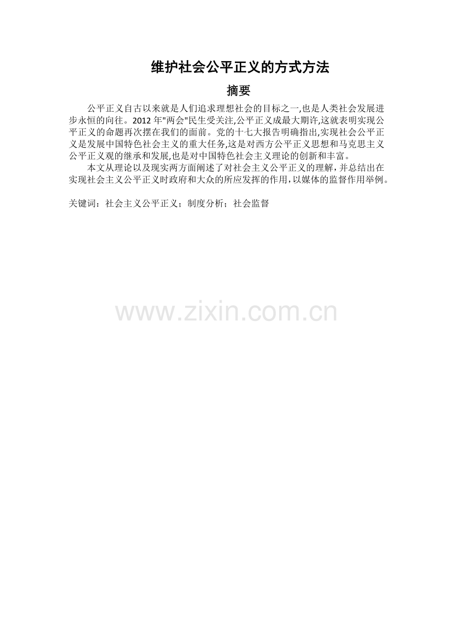 本文从理论以及现实两方面阐述了对社会主义公平正义的理解,并总结出在实现社会主义公平正义时政府和大众的所应发挥的作用,以媒体的监督作用举例。
