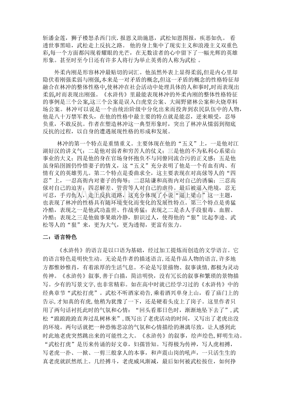 艺术特色 人物形象 语言特色 宋江 武松 林冲