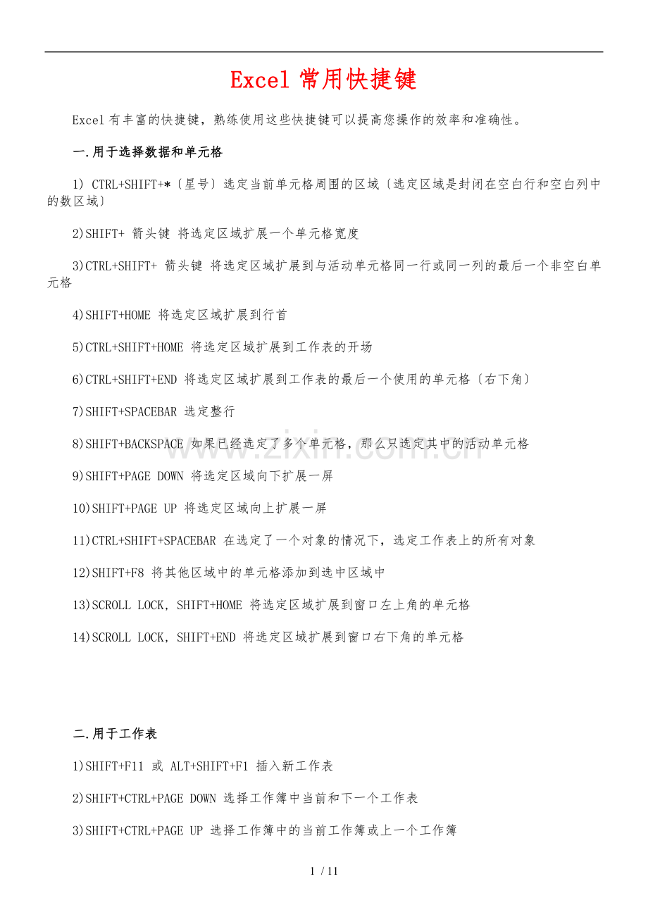 3)CTRL+SHIFT+ 箭头键 将选定区域扩展到与活动单元格同一行或同一列的最后一个非空白单元格