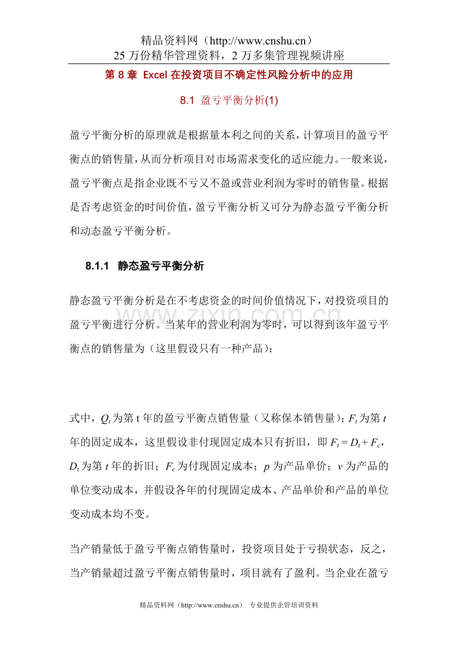8.1 盈亏平衡分析(1)
