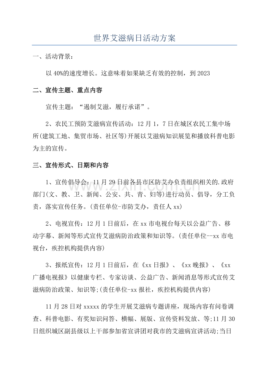 1、宣传倡导会:11月29日前各县市区防艾办负责组织相关的.政府部门(文、教、卫、新闻、公安、共、青、妇等)进行动员、倡导,分工负责,落实宣传任务。(责任单位-市防艾办,责任人xx)
