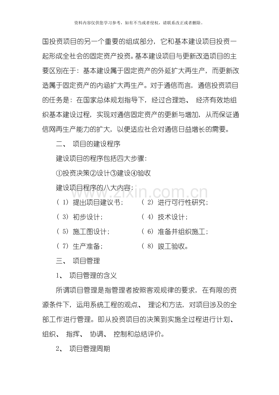 所谓项目管理是指管理者按照客观规律的要求, 在有限的资源条件下, 运用系统工程的观点、 理论和方法, 对项目涉及的全部工作进行管理。即从投资项目的决策到实施全过程进行计划、 组织、 指挥、 协调、 控制和总结评价。
