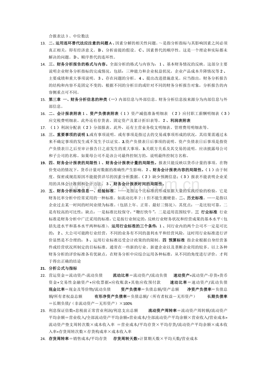 12. 企业竞争策略分析:最重要的竞争策略有两种:低成本竞争策略和产品差异策略。会计分析技术三种方法:水平分析法、垂直分析法、趋势分析法。标准比率其计算方法有三种:1、算术平均数2、综合报表法3、中位数法