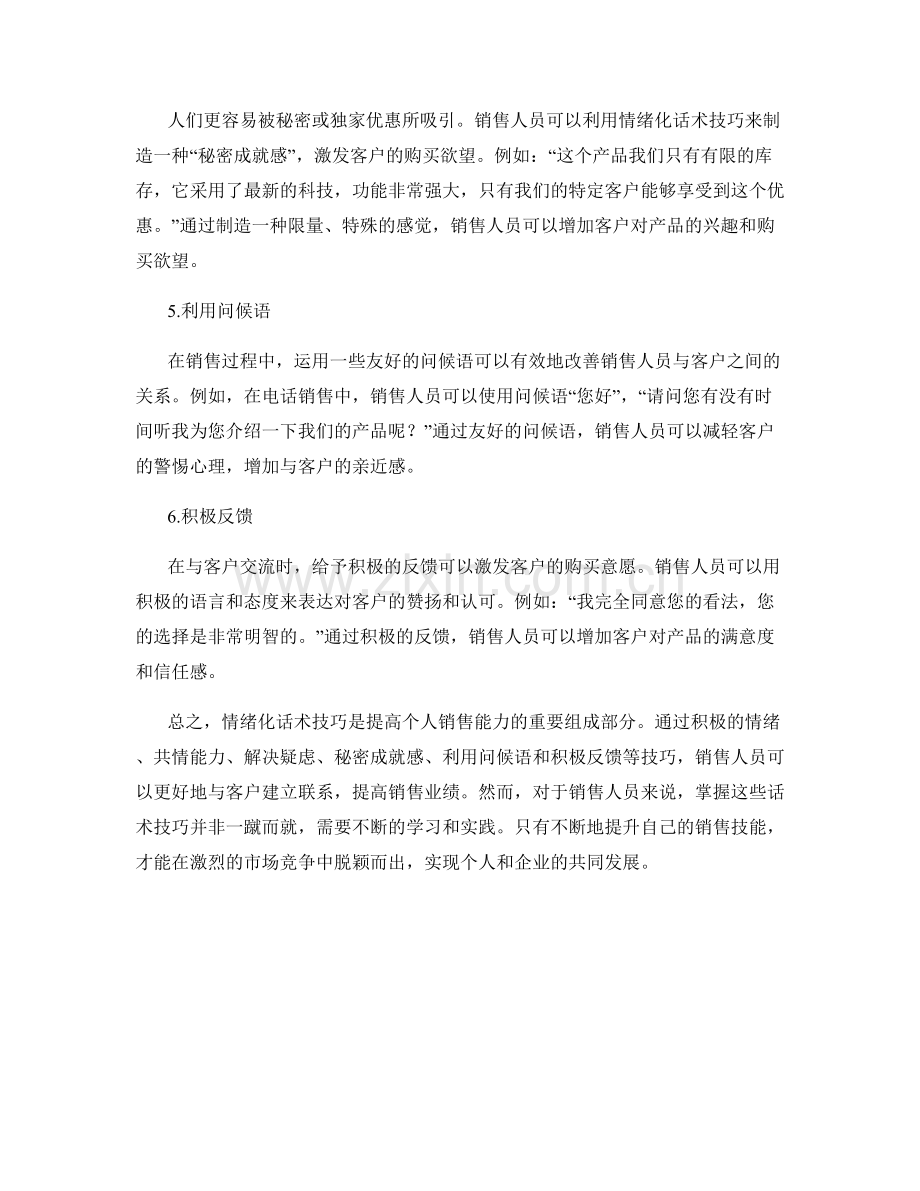 总之,情绪化话术技巧是提高个人销售能力的重要组成部分。通过积极的情绪、共情能力、解决疑虑、秘密成就感、利用问候语和积极反馈等技巧,销售人员可以更好地与客户建立联系,提高销售业绩。然而,对于销售人员来说,掌握这些话术技巧并非一蹴而就,需要不断的学习和实践。只有不断地提升自己的销售技能,才能在激烈的市场竞争中脱颖而出,实现个人和企业的共同发展。