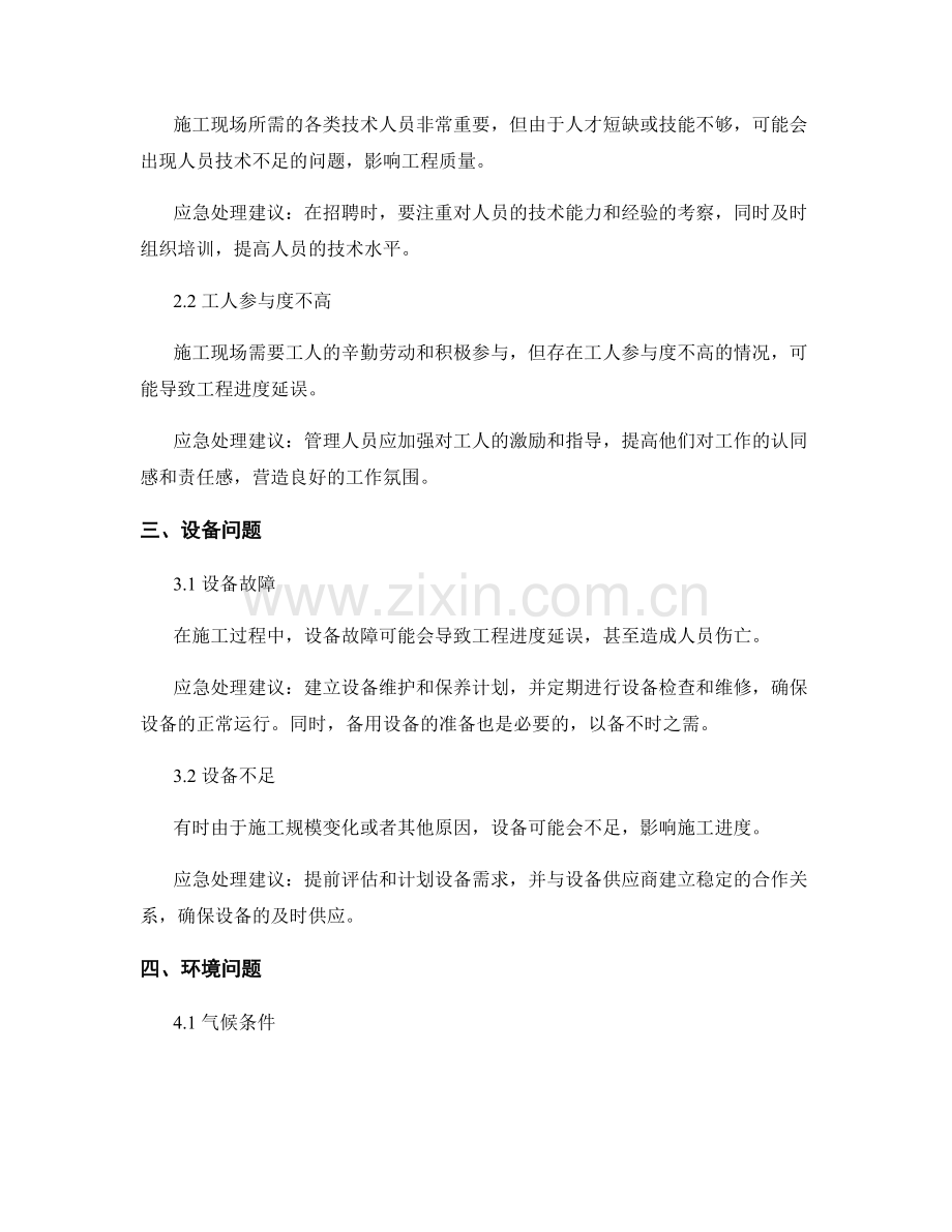 应急处理建议:建立完善的施工进度管理制度,确保施工进度的准确掌握,并对可能导致进度延误的问题进行及时的调整和解决。
