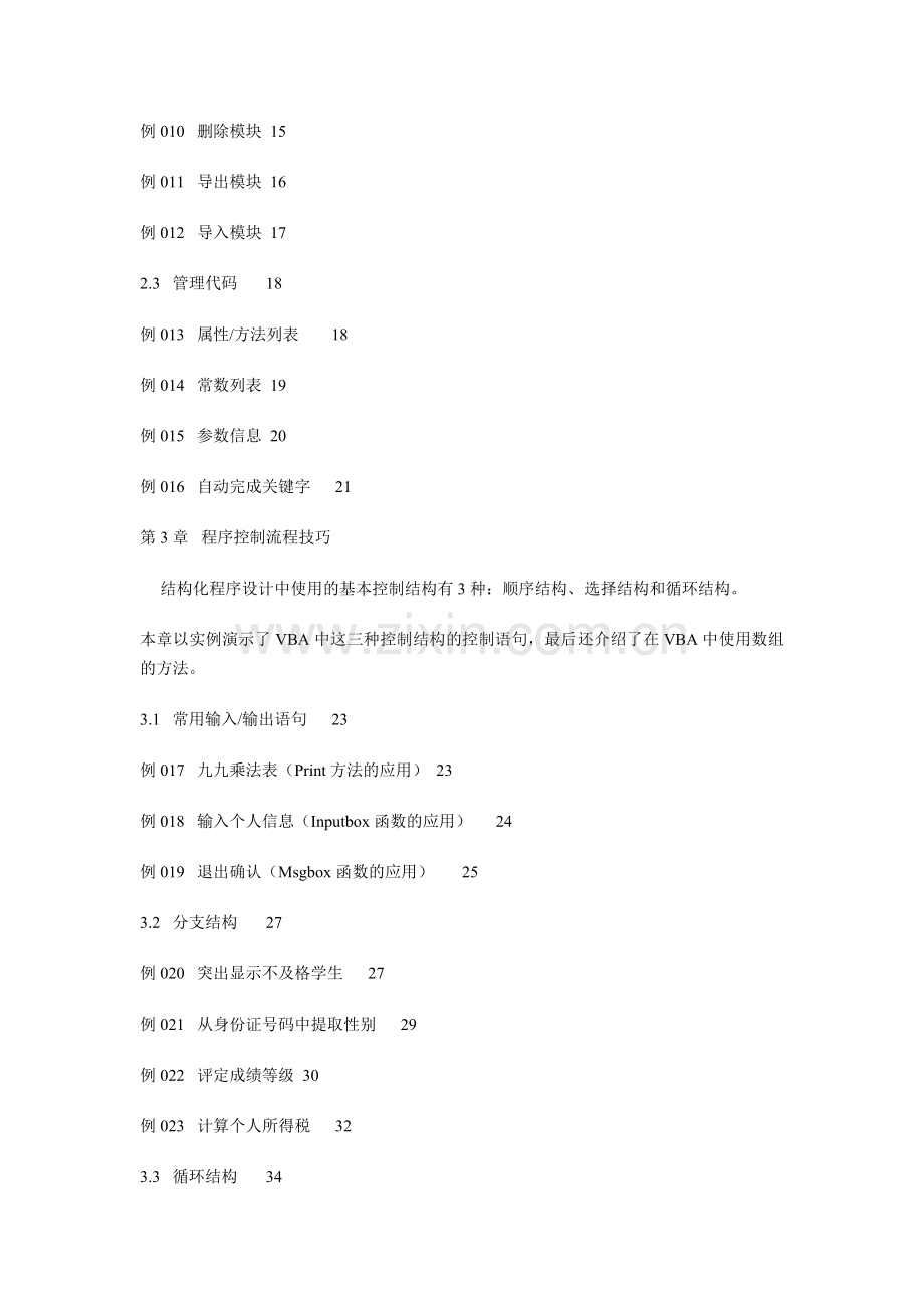 本章以实例演示了VBA中这三种控制结构的控制语句,最后还介绍了在VBA中使用数组的方法。