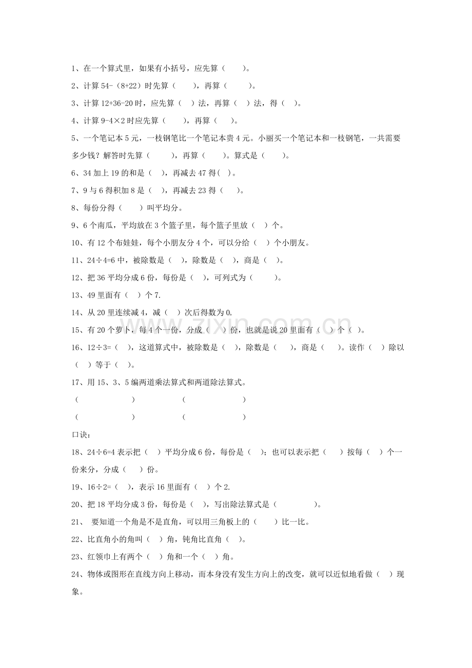 32、24÷3=8表示把( )平均分成( )份,每份是( );还可以表示( )里面有( )个( );或者24是( )的( )倍。