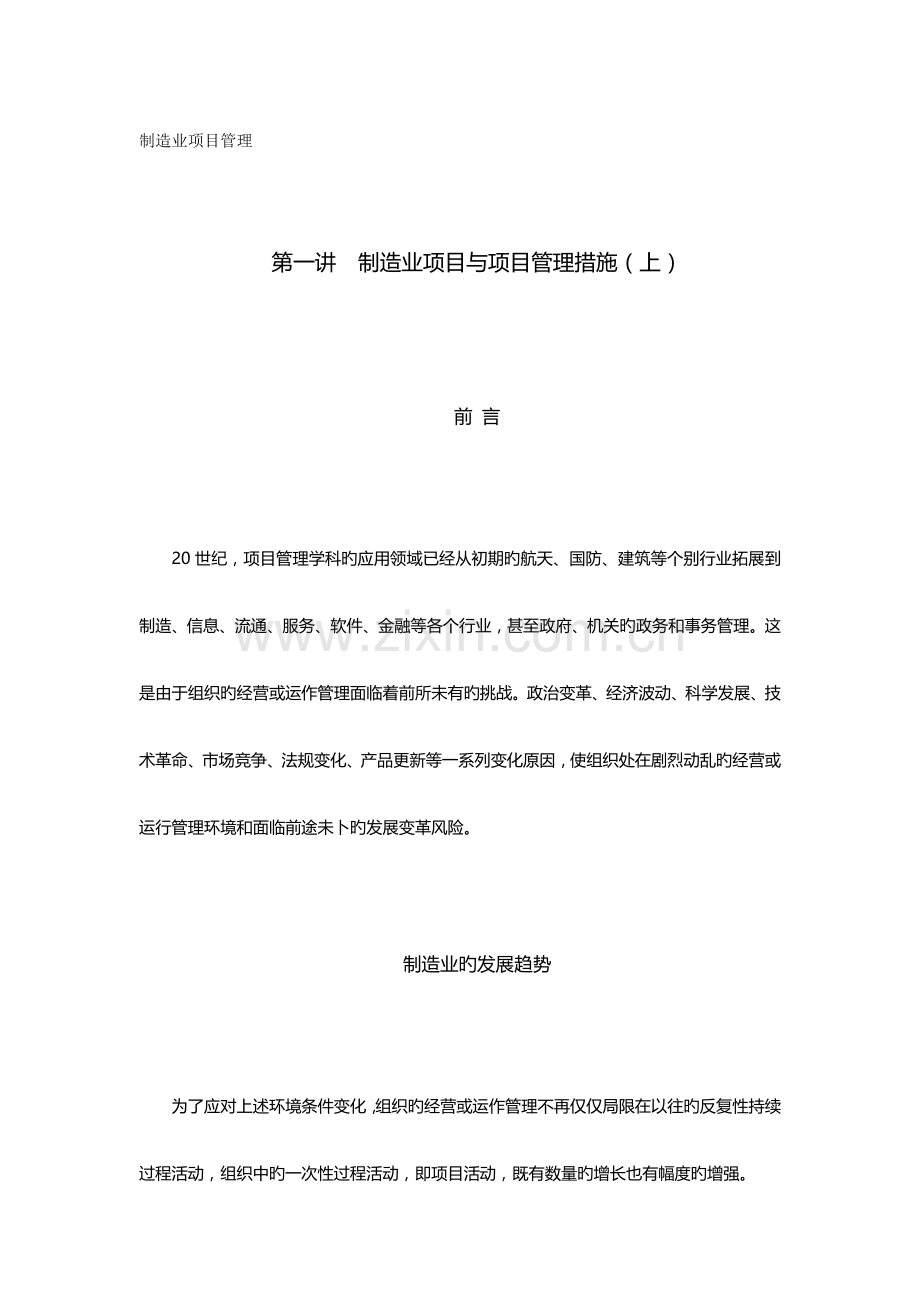 制造业根据自身旳内部和外部条件在发展和改善方向之间定位和寻求阶梯式旳提高。这两个方向属于发展和变革,具有项目属性,需要项目管理。