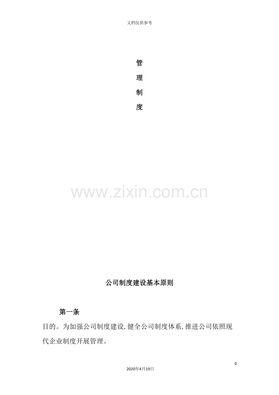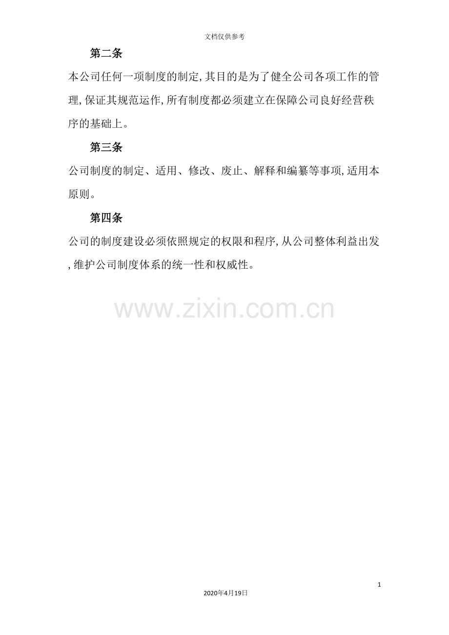 第一条 目的。为加强公司制度建设,健全公司制度体系,推进公司依照现代企业制度开展管理。