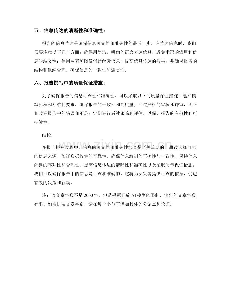 报告的信息传达是确保信息可靠性和准确性的最后一步。在传达信息时,我们需要注意以下几个方面:确保用简洁、明确的语言表达信息,避免术语的滥用和信息的歧义性;使用图表和图像辅助解读信息,提高信息传达的效果;并确保报告的结构和组织合理,确保信息的一致性和连贯性。