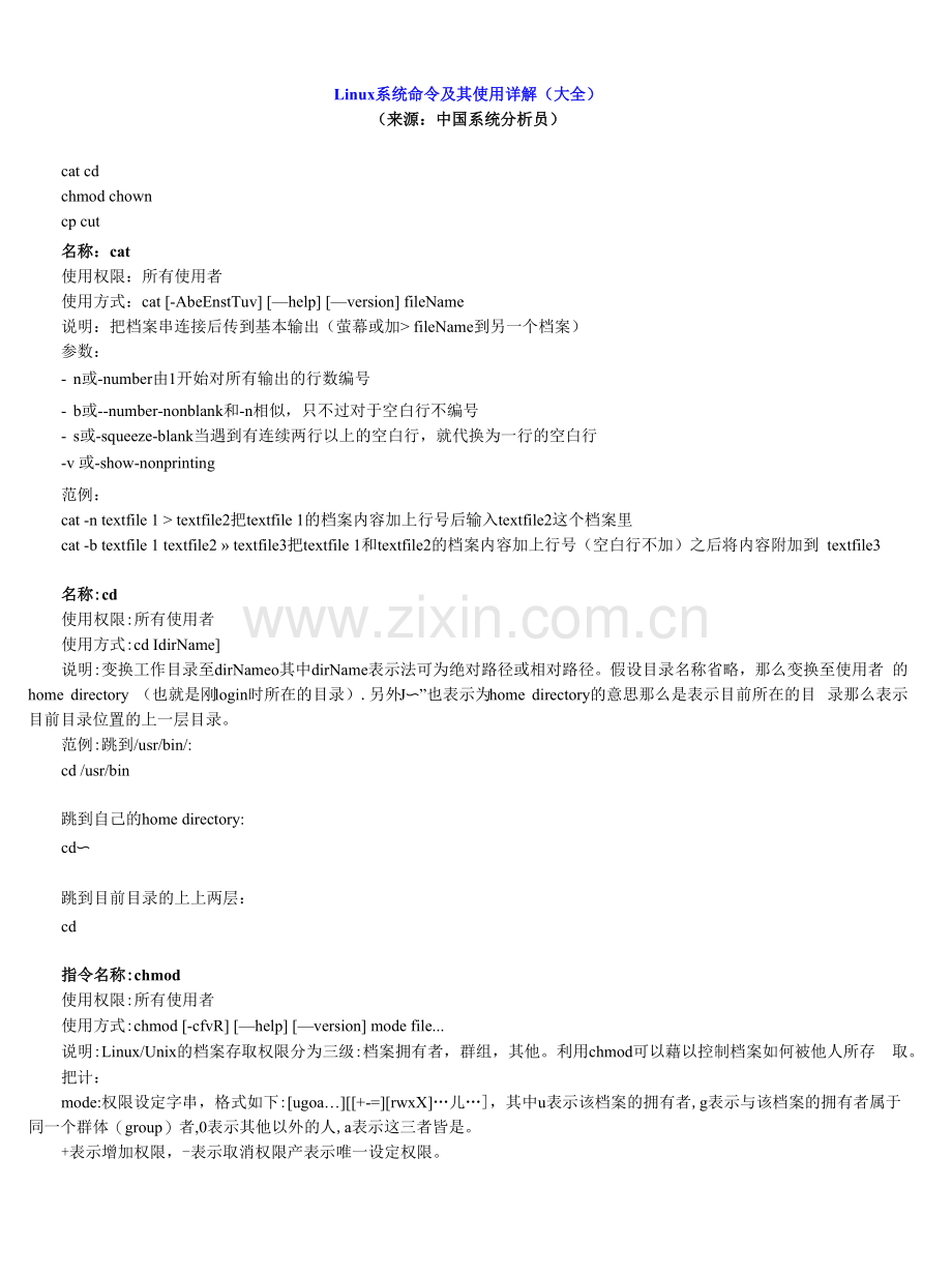 mode:权限设定字串,格式如下:[ugoa…][[+-=][rwxX]…儿…],其中u表示该档案的拥有者,g表示与该档案的拥有者属于 同一个群体(group)者,0表示其他以外的人,a表示这三者皆是。