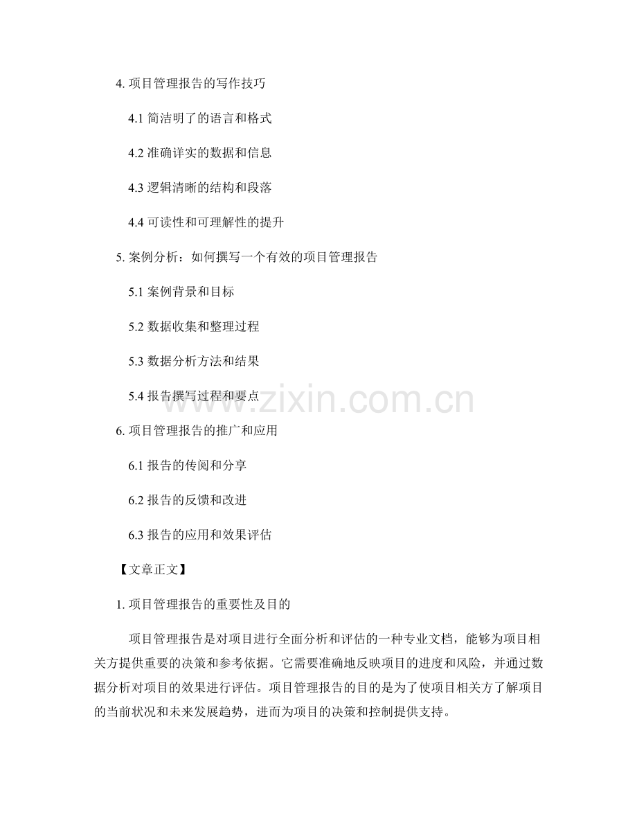 项目管理报告是对项目进行全面分析和评估的一种专业文档,能够为项目相关方提供重要的决策和参考依据。它需要准确地反映项目的进度和风险,并通过数据分析对项目的效果进行评估。项目管理报告的目的是为了使项目相关方了解项目的当前状况和未来发展趋势,进而为项目的决策和控制提供支持。